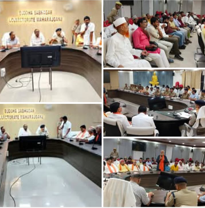 महराजगंज आगामी शारदीय नवरात्रि, दशहरा एवं अन्य पर्वों के दृष्टिगत कलेक्ट्रेट सभागार में जिलाधिकारी महराजगंज एवं पुलिस अधीक्षक महराजगंज की संयुक्त अध्यक्षता में पीस कमेटी की बैठक आयोजित की गई।