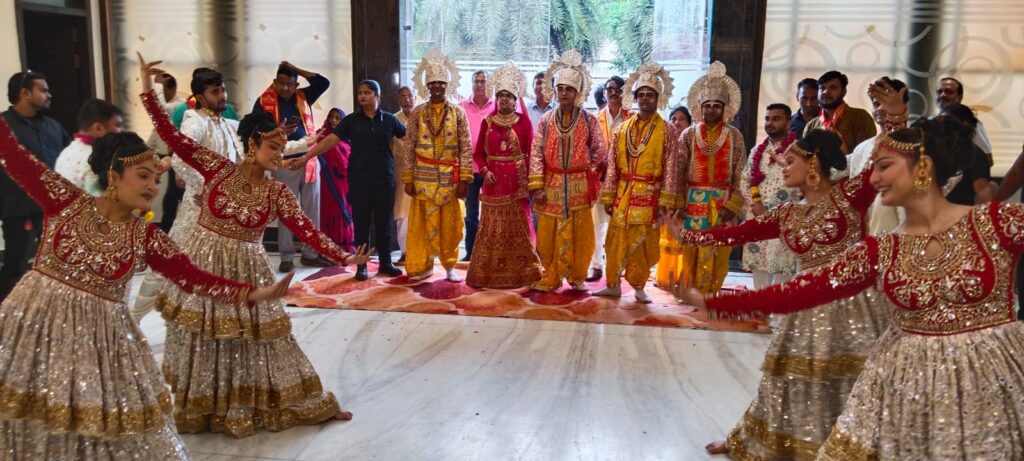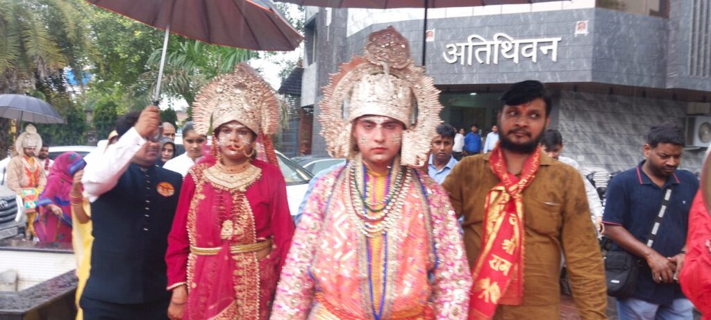 रेड कार्पेट पर मुंबई के कलाकारों ने प्रभु राम, माता सिया और अन्य स्वरूपों की आरती करते हुए मुख्य मंच तक अगवानी की। जैसे ही माता जानकी के साथ प्रभु राम के दिव्य दर्शन मिथिलावासियों को हुए, जयकारों के साथ छायाचित्र लेने की होड़ मच गई।